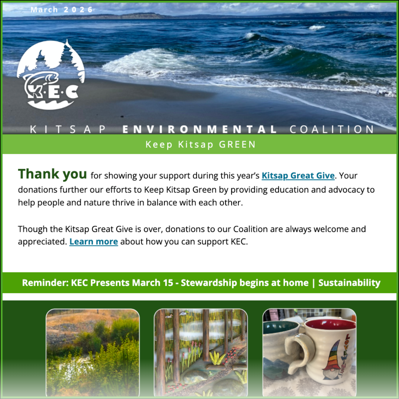 Learn about KEC's activities and environmental news affecting our Kitsap communities.