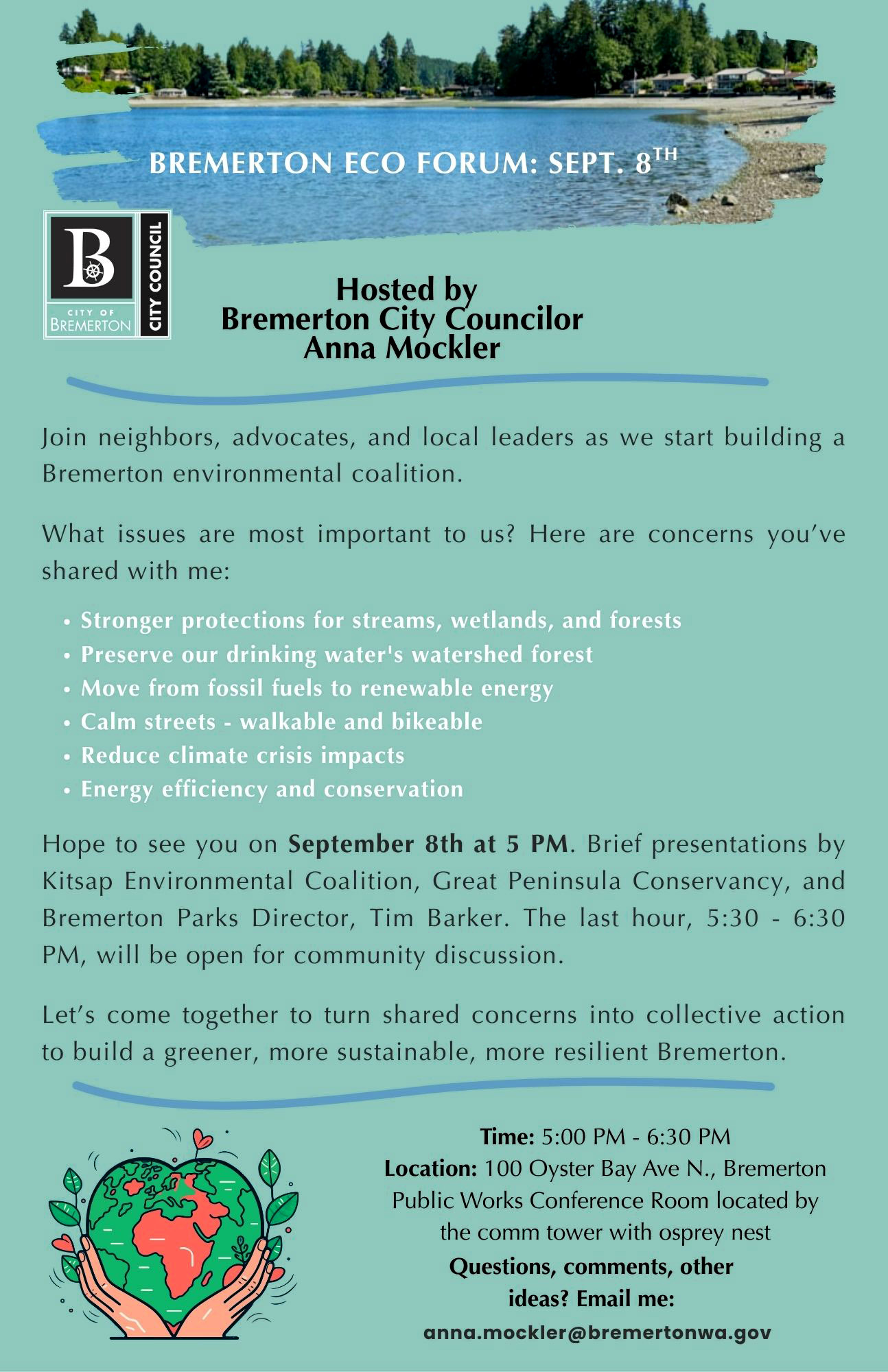Join neighbors, advocates, and local leaders as we start building a Bremerton environmental coalition.